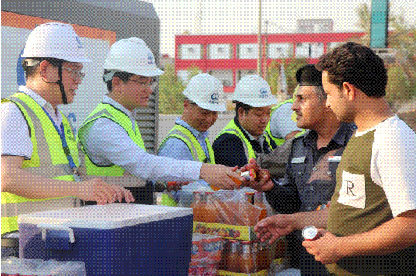 国之交在于民相亲,民相亲在于心相通。中伊项目团队充分尊重彼此文化信仰,坚持兼容并包,适时组织开展汉语和阿拉伯语双语学习,既传播中华传统文化,又吸收古巴比伦文明,循序实现文明交流互鉴、文化管理认同、共圆项目建设美好愿景。在“阿尔巴因”朝觐季节,项目部积极开展公益布施活动,向属地朝觐信众免费发放清真食品和饮料。与此同时,以公众日为载体,热情接待来自伊拉克大学等多所院校师生代表团参观交流,为当地师生培训超过800余人次。