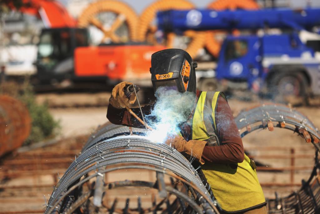 3月2日,一名中方员工在伊拉克巴格达尼苏尔立体交通枢纽项目现场施工作业。新华社发(哈利勒·达伍德摄)