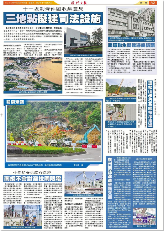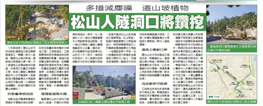 澳门“环松山步行系统设计连建造工程”项目是澳门特区重点工程项目。项目自开工以来受到了澳门社会各界关注,《澳门日报》等媒体多次报道该项目实施进展情况。