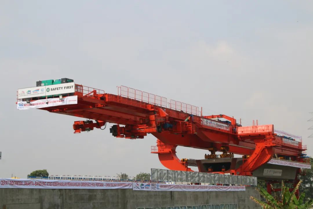 中国中铁研制的架桥机应用于雅万高铁施工现场