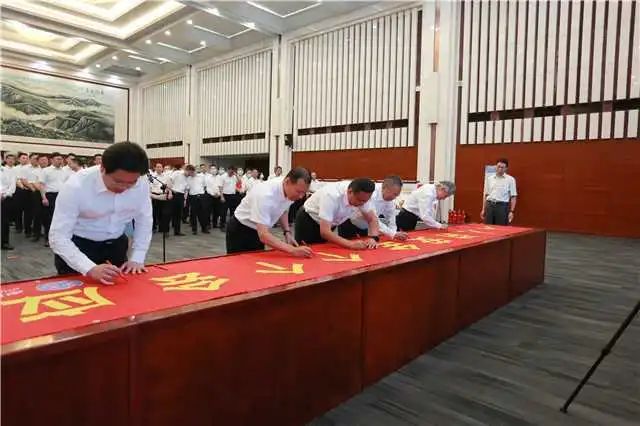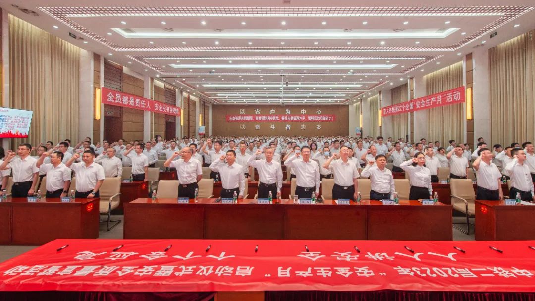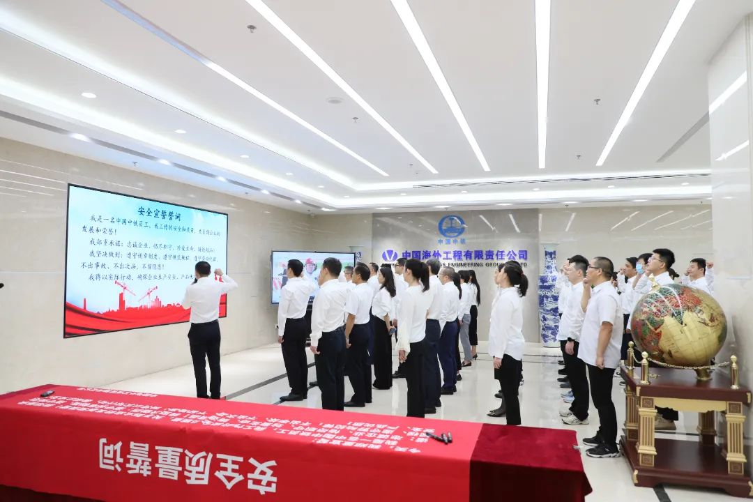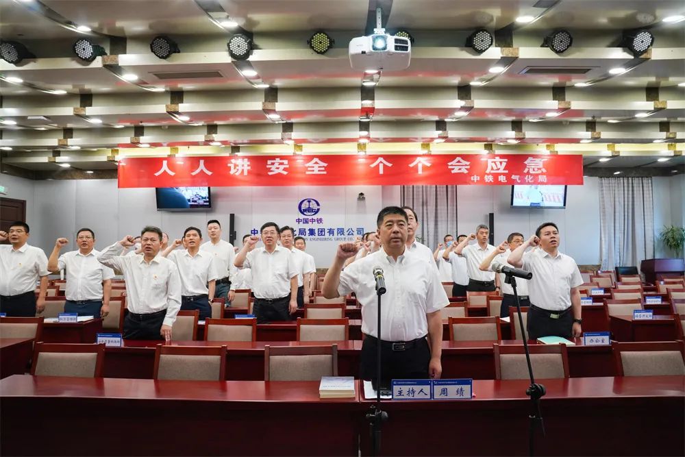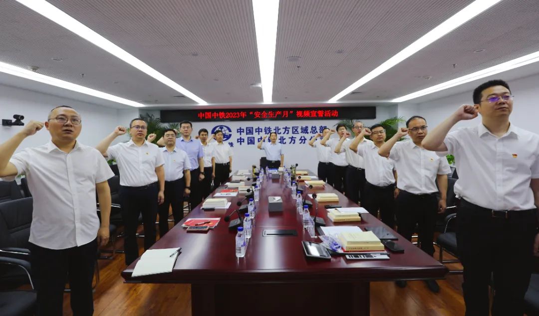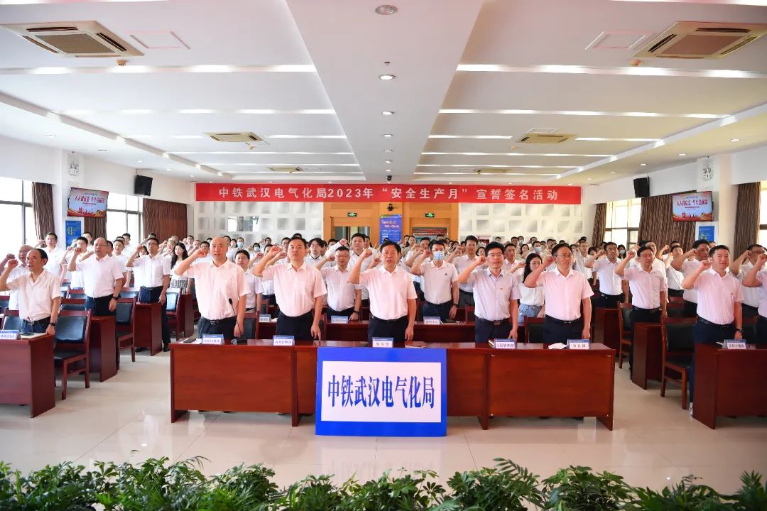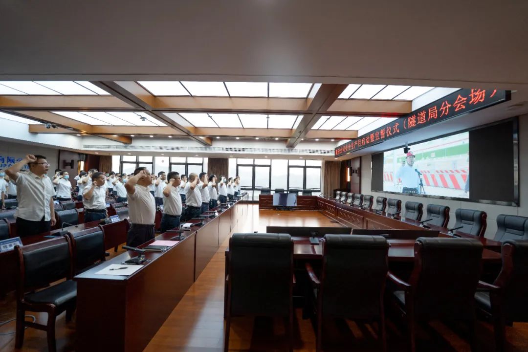本次宣誓活动通过视频连线方式在二、三级单位本部以及6200多个在建项目同步开展,全公司30万员工参加宣誓。中铁三局广佛西环线项目总工张新林在广东主会场向全公司员工发出“人人讲安全”倡议。随后,与会人员依次在安全月宣传条幅上签名。