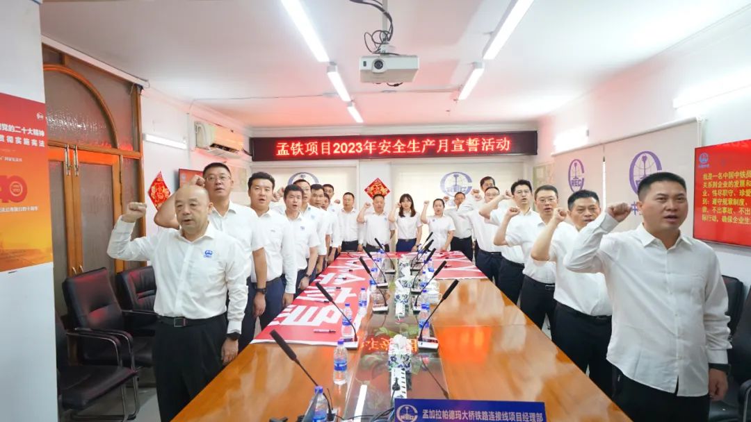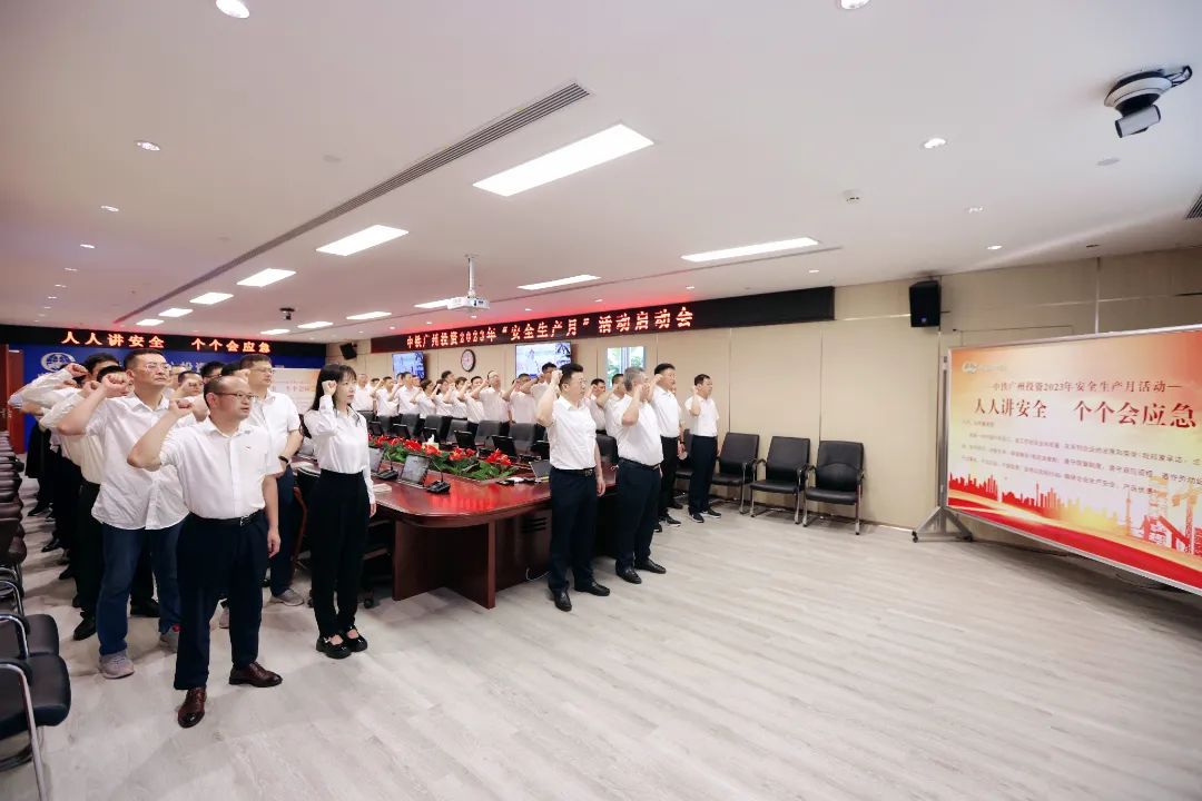 股份公司总部、广佛西环线项目二工区现场、各项目会议室、施工现场,誓言铮铮、响彻寰宇,中国中铁30万员工集体宣誓,向社会、企业和个人作出郑重承诺。中国中铁党委书记、董事长陈云在广东主会场宣布安全生产月活动正式启动并讲话,总裁、党委副书记陈文健在股份公司总部主持活动,党委常委、副总裁马江黔领誓,公司领导及高管出席活动。