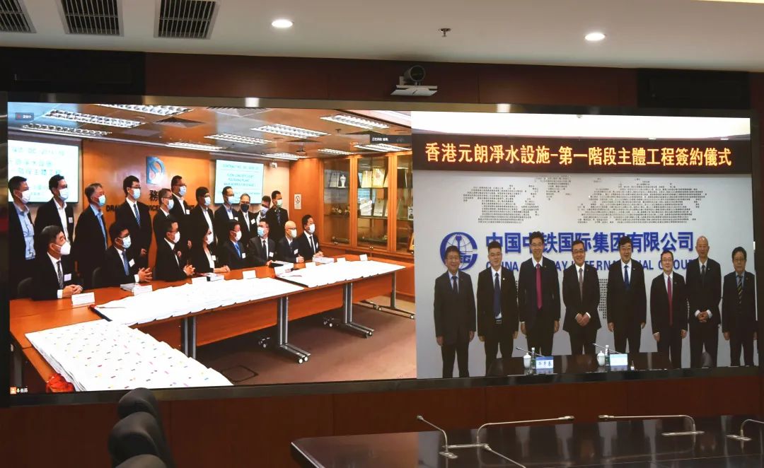 11月17日上午,“元朗净水设施—第一阶段主体工程”施工总承包合同签署仪式在香港特别行政区渠务署举行。渠务署署长彭雅妮女士、总工程师(污水工程)叶达明先生等出席签约仪式。中铁国际副董事长、党委副书记(主持工作)毕彦春、总经理郭炜等在集团本部以视频方式见证项目签约。中铁国际亚洲分公司总经理、中国铁路工程(香港)有限公司执行董事袁作祥代表中国中铁,带领联营体成员在香港渠务署签署合同。