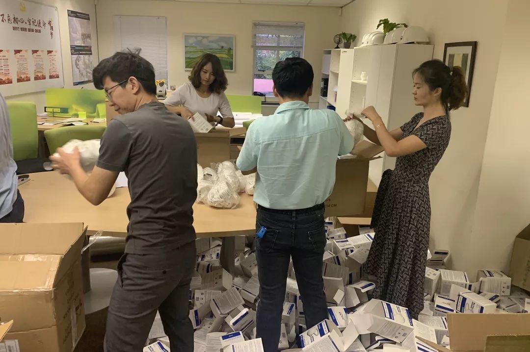 春节期间,南部非洲公司有6名中外员工留守。国内疫情持续蔓延,防护用品频频告急,这深深牵动着公司员工的心。为了让国内能在第一时间收到一批口罩救急,大家加班加点,在2天内完成了2万余只口罩的装箱、打包、贴箱单等工作,通过托运、快递等方式陆续发回国内。