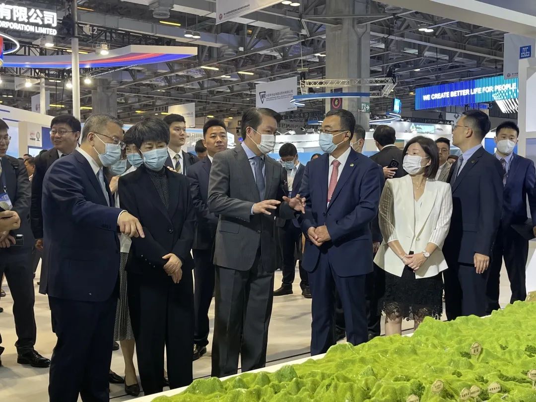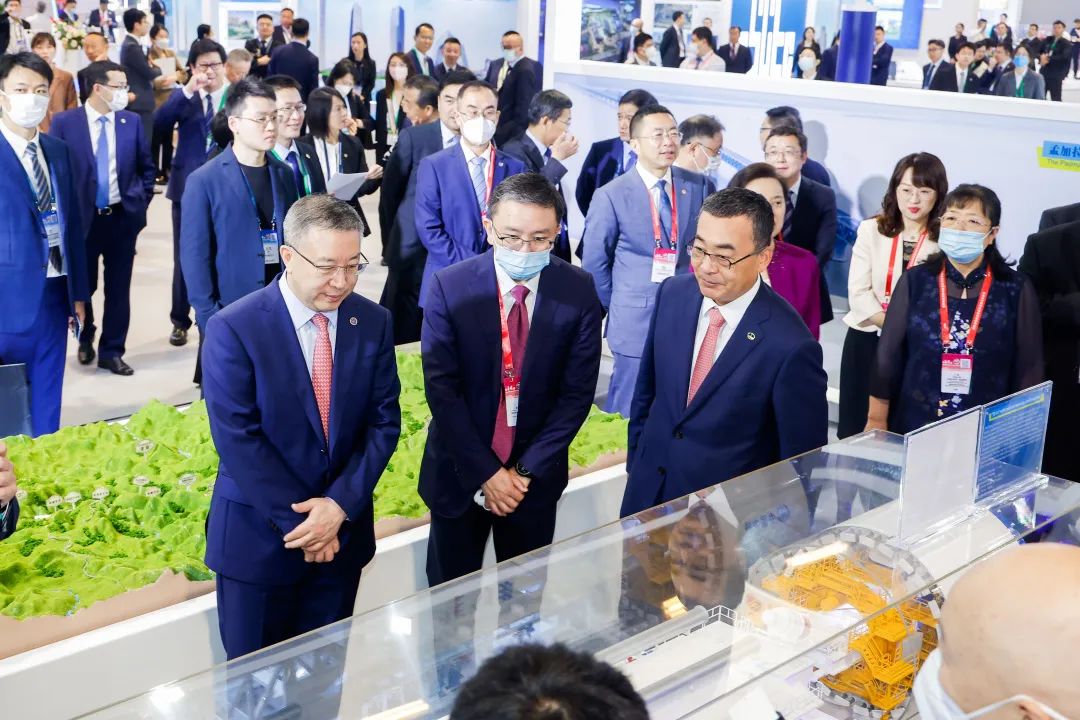 商务部副部长郭婷婷、中央人民政府驻澳门特别行政区联络办公室副主任黄柳权、澳门特别行政区经济财政司司长李伟农、国资委规划局局长戴希等莅临中国中铁展区参观,详细观摩了中老铁路老挝段沙盘模型、“麒麟号”土压平衡盾构机等模型。毕彦春简要介绍了中国中铁近年来深入践行“三个转变”,深入推进高质量发展,加快建设世界一流企业,勇当中国式现代化的开路先锋的企业发展情况。他表示,中国中铁始终胸怀“国之大者”,加强核心技术攻关,从无到有、从有到优、从国内第一迈向国际领先创新研制盾构机、架桥机一批“大国重器”;立足新发展阶段,坚持高标准、可持续、惠民生目标,围绕中国中铁的全产业链优势,先后建设中老铁路、雅万高铁、孟加拉帕德玛大桥、匈塞铁路等“一带一路”重点基础设施项目,为高质量共建“一带一路”建设行稳致远贡献力量。