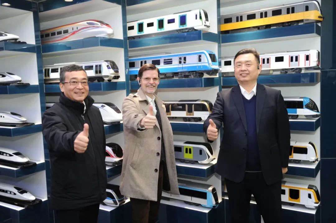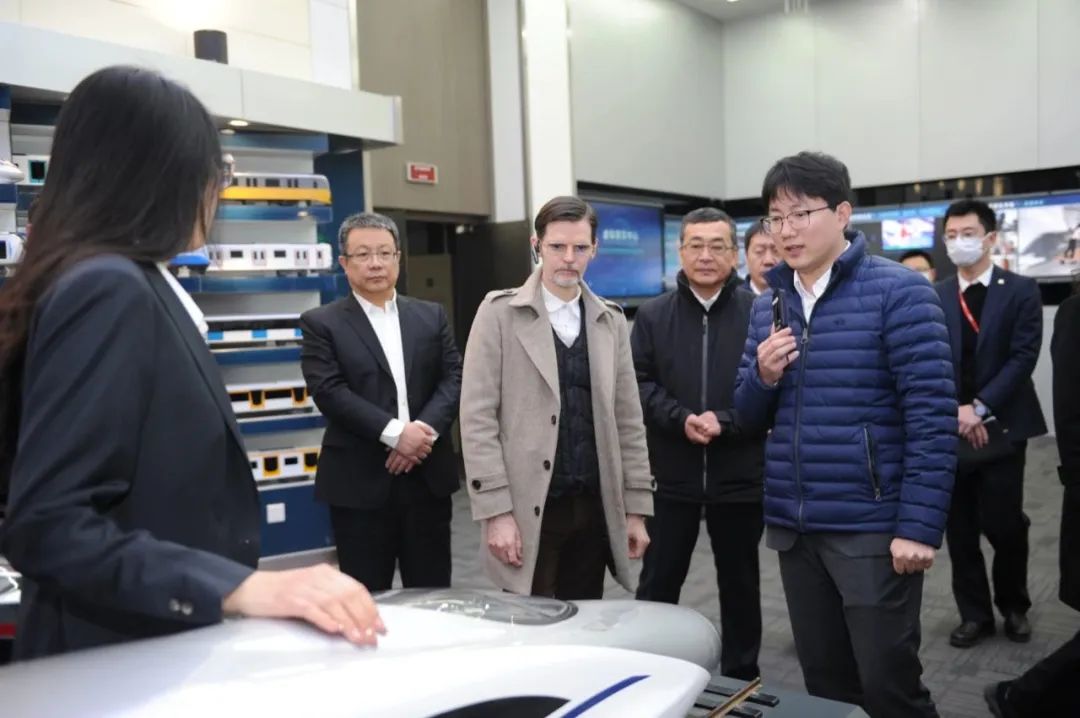 牛望道大使还在毕彦春、田学华陪同下参观了中车四方的生产基地,观看了磁悬浮列车原车、工程实验室、虚拟现实中心、高铁技术支持中心、大数据中心以及轮轴自动生产线。