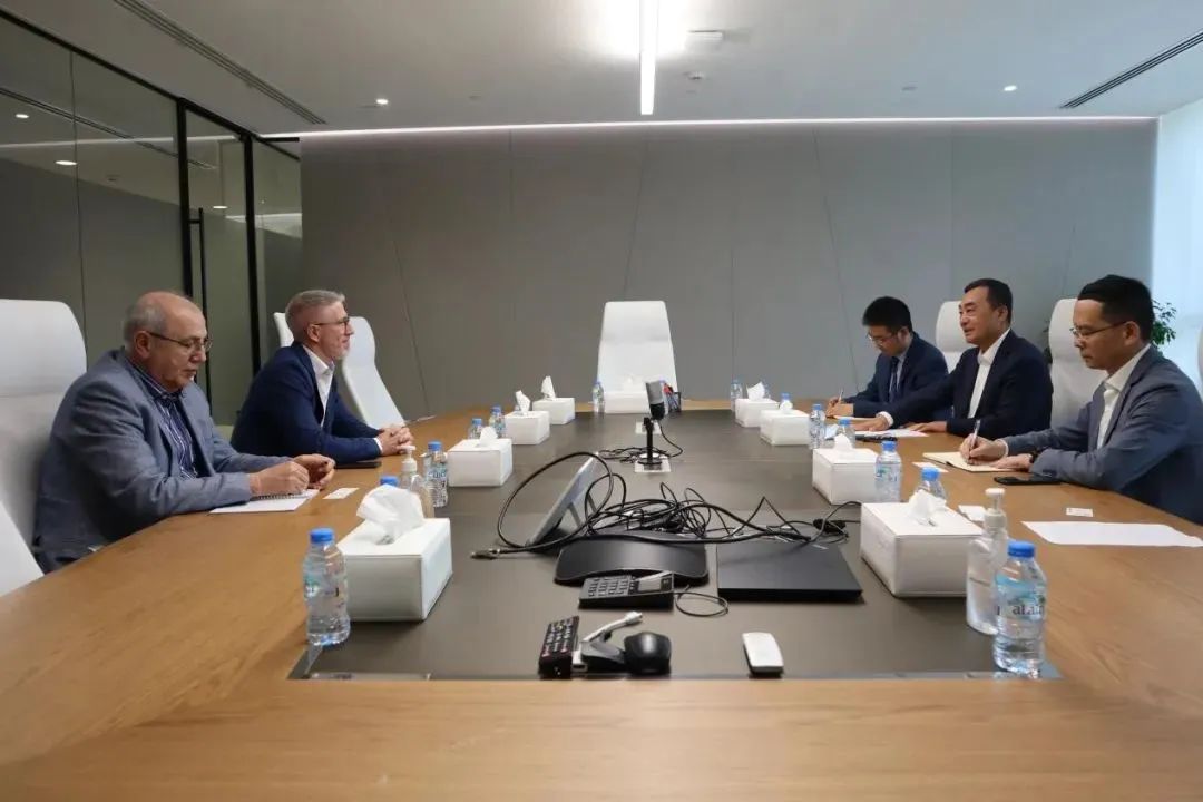 毕彦春一行还与中建中东公司副总经理田三川、中铁四局驻迪拜分公司负责人李刚一行进行座谈交流。毕彦春一行对中建中东公司在阿联酋取得的成绩表示赞赏,双方围绕中东区域重点国别市场布局、项目经营开发、投融资业务、履约管理及属地化管理等方面进行深入沟通,并表示双方在阿联酋及中东周边国别有较为广阔的合作空间,希望中建中东与中国中铁建立合作机制,发挥各自优势,抱团出海,深耕中东区域,实现合作共赢。