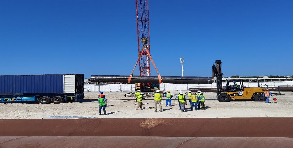 为切实保障中铁国际集团中岛公园大道项目一期1B项目紧锁钢管桩供应工作,春节前夕,中铁国际集团商贸有限公司委派中东供应分中心的两名同事火速奔赴阿布扎比地区开展工作对接。2025年1月22日,首批紧锁钢管桩历经近一个月的航行,顺利抵达施工现场并完成卸货,为缩短整个项目的围堰施工周期创造了条件,为后续按时推进主体结构施工奠定了坚实基础。