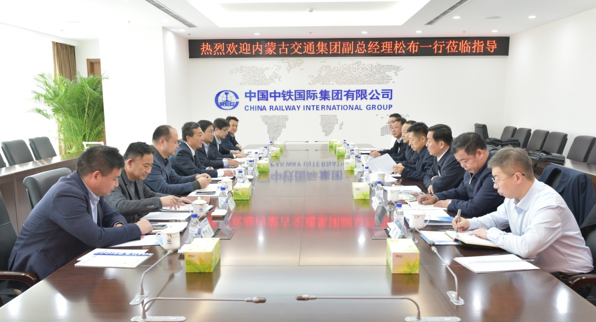 毕彦春对松布一行的到访表示热烈欢迎,介绍了中国中铁历史沿革、业务板块、海外体制机制改革、重点国别生产经营以及企业在内蒙古自治区的业务发展情况,分享了国际工程承包行业的特点和经验,重点介绍了企业在蒙古国的经营开发和重点项目建设推进情况。毕彦春表示,内蒙古是国家向北开放的重要桥头堡,内蒙古交通集团是自治区交通建设的主力军,在中蒙两国经贸合作中具有得天独厚的优势。近年来,中铁国际依托海外市场布局网络及企业在蒙古国长期积累的工程经验和技术优势,充分发挥中国中铁全产业链优势,承揽了蒙古国多个基础设施项目,希望双方以本次会谈为契机,以重点国别为工作对象,聚焦具体项目,加强沟通协作,聚合优势资源,共同推动境外业务高质量发展。同时,通过内引外联,有力促进中国中铁相关业务板块与内蒙古自治区相关单位进一步深化合作。
