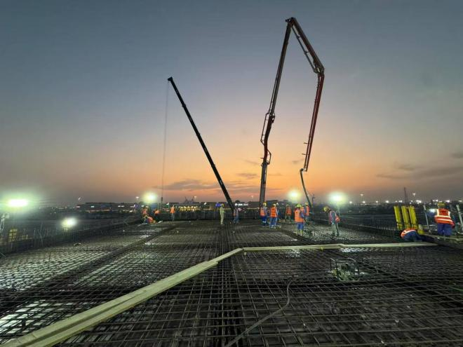 迪拜时间4月9日,随着阿联酋阿提哈德铁路车站项目MBZ站站房主体结构最后一块楼板浇筑完毕,项目主体结构顺利封顶,实现关键节点工期目标,为项目按期交付奠定坚实基础。