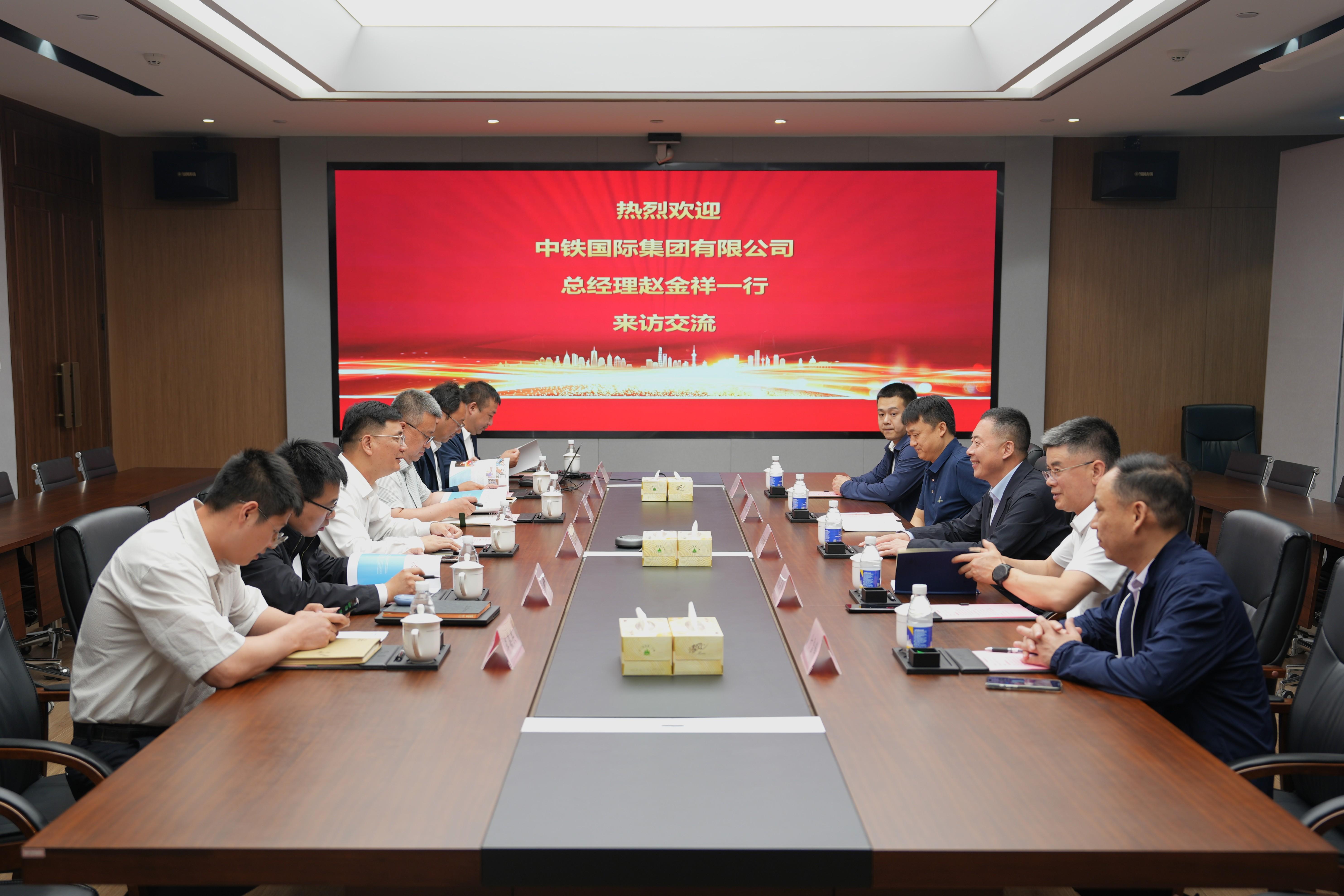 9日下午,赵金祥与中化学华谊集团党委书记、董事长江泽礼举行会谈,双方围绕境外发展、产业布局、业务合作等展开深入交流。赵金祥对中化学华谊集团的热情接待表示感谢,简要介绍了中铁国际历史沿革、境内外业务布局及参与“一带一路”标志性项目建设情况等。他表示,中化学华谊集团实力雄厚,产业链完善,希望双方发挥各自比较优势,深化海外市场合作,携手推进双方国际业务高质量发展。江泽礼对赵金祥一行来访表示热烈欢迎,介绍了中化学华谊集团的发展历程、战略规划、业务范围及人才队伍建设情况。他表示,中铁国际深耕国际市场多年,海外营销网络健全、项目管控体系完善、属地化资源丰富,中化学华谊集团具备从项目规划、设计、施工到运营维护的全过程能力,希望双方加深交流合作,强化优势互补,携手拓展海外业务,实现互利共赢。